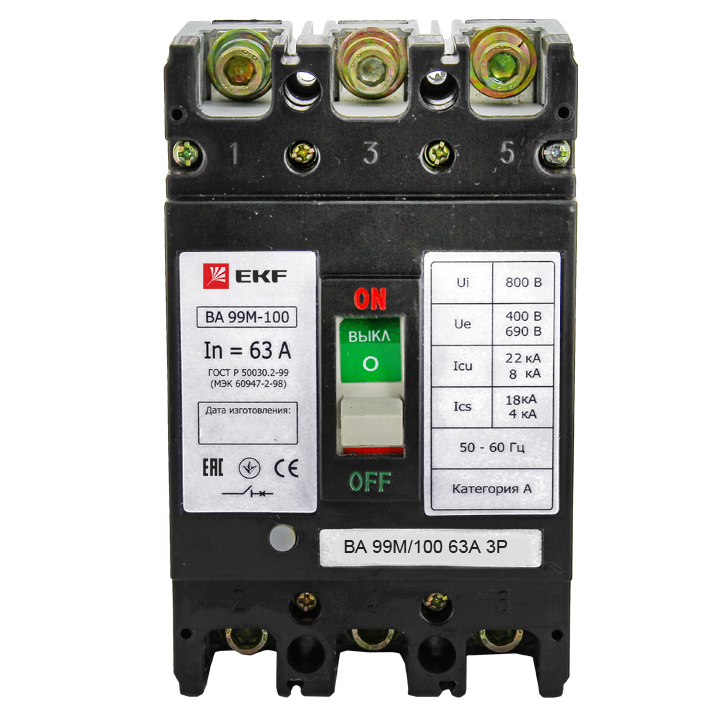 Ավտոմատ անջատիչներ VA-99 EKF Proxima նախատեսված են հոսանքի ոչ հաճախակի օպերատիվ միացման եւ անջատման համար նորմալ ռեժիմով, ինչպես նաեւ բնակելի եւ քաղաքացիական շինարարության, արտադրական տարածքների, էլեկտրական ենթակայանների, բաշխիչ կետերի էլեկտրական սարքավորումների ծանրաբեռնվածության հոսանքի եւ կարճ միացման պաշտպանության համար, կոմուտատորով նոմինալ լարման մինչեւ 400 V ,50 gh հաճախականության սկսած 16 մինչեւ 1600 A հոսանքներով: Ավտոմատ անջատիչներ VA-99M EKF ապրանքանիշի VA-99 EKF PROxima սերիայի անջատիչների էկոնոմ տարբերակն են: Տվյալ անջատիչները արտադրվում են ջերմամագնիսային բաժանարարներով: