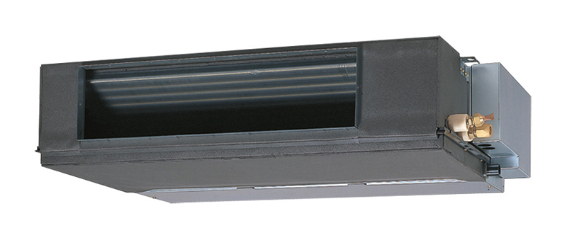 Միջին ճնշման ալիքային տեսակի ինվերտորային սպլիտ համակարգերը համալրված են ներկառուցված ջրահեռացման պոմպով եւ նուրբ մաքրման օդի ֆիլտրերով: Բարձր էներգաարդյունավետությունը եւ արդյունաբերության ճկուն ինքնակարգավորումը ապահովվում են կոմպրեսորների եւ արտաքին ու ներքին բլոկների հովհարիչների ինվերտորային կառավարման միջոցով: Կոմպակտ չափսերի եւ ինչպես հորիզոնական այնպես էլ ուղղահայաց տեղադրման հնարավորության շնորհիվ, ներքին բլոկները կարելի է հեշտությամբ թաքցնել առաստաղի ետեւամասի տարածքում կամ պատի խորացված մասում: Հովհարիչի ճնշումը կարգավորելու, 0-ից մինչեւ 90 Պա, լայն հնարավորությունները թույլ են տալիս միացնել մեծ տարածականության օդի տեղափոխիչներ: Գերբարակ եւ հանգիստ ալիքային օդորակիչները հարմար են ինչպես բնակելի, այնպես էլ գրասենյակային տարածքների օդորակման համար: