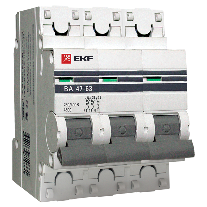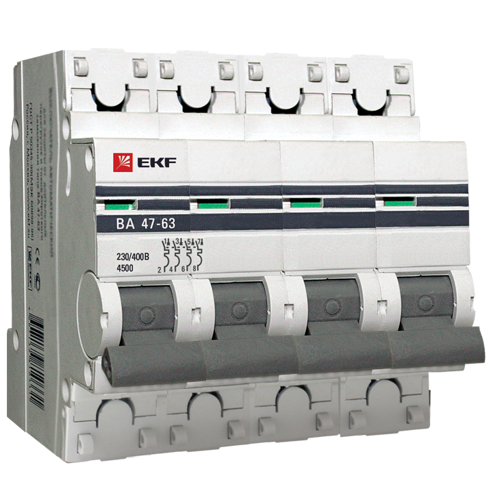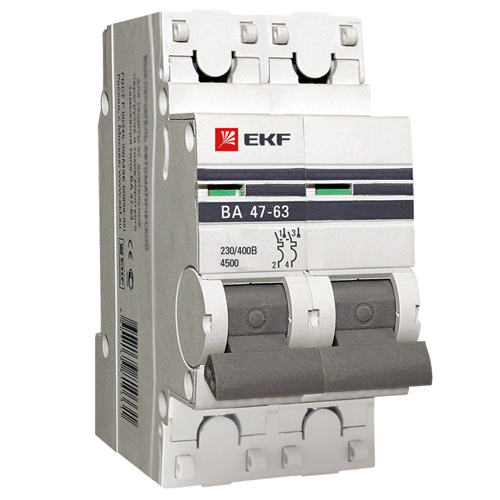 Ավտոմատ անջատիչներ ВА 47-63 4.5 kA EKF Proxima նախատեսված են էլեկտրական շղթաների հատվածների օպերատիվ վերահսկման, ինչպես նաեւ ադմինիստրատիվ, արդյունաբերական եւ բնակելի շենքերի ծանրաբեռնվածության հոսանքից ու կարճ միացումից պաշտպանելու համար: Անջատիչները արտադրվում են մեկ, երկու, երեք եւ չորս բևեռ ունեցող տարբերակներով: երաշղիքային պատասխանատվությունը 5 տարի է: