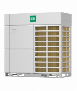 EK EKVO-CH-a մոդուլային VRF համակարգերի շարքը ներառում է 15 մոդել ՝ 22,4-ից 101 կվտ հովացման հզորությամբ: Մինչև չորս բլոկ կարելի է համատեղել մեկ համակարգի մեջ ՝ այդպիսով հասնելով մինչև 360 կՎտ ընդհանուր արտադրողականության ։ Արտաքին բլոկների և կոմպրեսորների ռոտացիայի և ավելորդության առաջադեմ ալգորիթմները ապահովում են աշխատանքի բարձր հուսալիություն: EVI տեխնոլոգիայով բարձր արդյունավետության կոմպրեսորները զգալիորեն մեծացնում են համակարգի աշխատանքը ՝ ապահովելով դրա գործունեությունը ցածր ջերմաստիճանի ջեռուցման ռեժիմում: Էլեկտրոնային բաղադրիչները սառնագենտով սառեցնելու հետ մեկտեղ ընդլայնվում են համակարգի օգտագործման հնարավորությունները տարբեր կլիմայական պայմաններում ' - 25-ից 52 °C ջերմաստիճանում: G-աձև երկկողմանի ջերմափոխանակիչի դիզայնը, որը զուգորդվում է ափսեի գերտաքացուցիչի հետ, նպաստում է արտադրողականության բարձրացմանը և թույլ է տալիս հարթեցնել ֆրոնո խողովակաշարերի երկար ուղիները: Այս մոտեցումը լրացուցիչ ճկունություն է ապահովում օդորակման համակարգերի նախագծման մեջ և հեշտացնում է արտաքին բլոկների տեղադրումը ներքին միավորների նկատմամբ, ինչը հատուկ նշանակություն ունի լայնածավալ և համապարփակ նախագծերի համար: